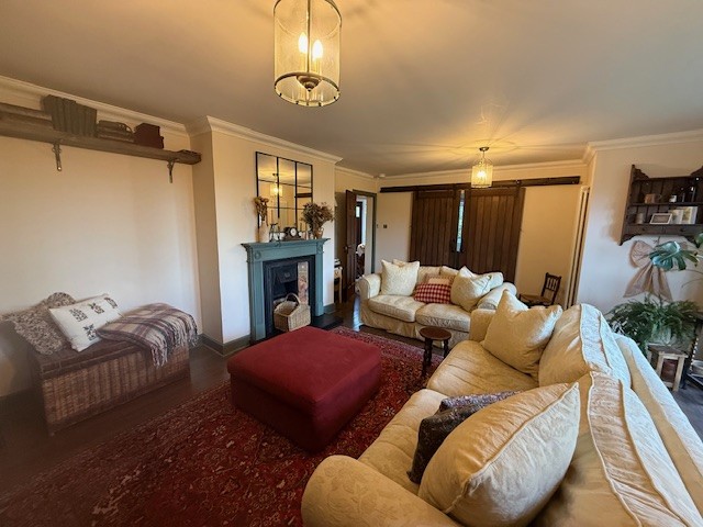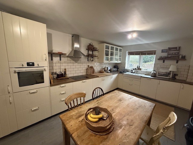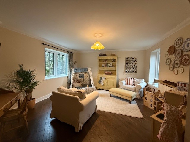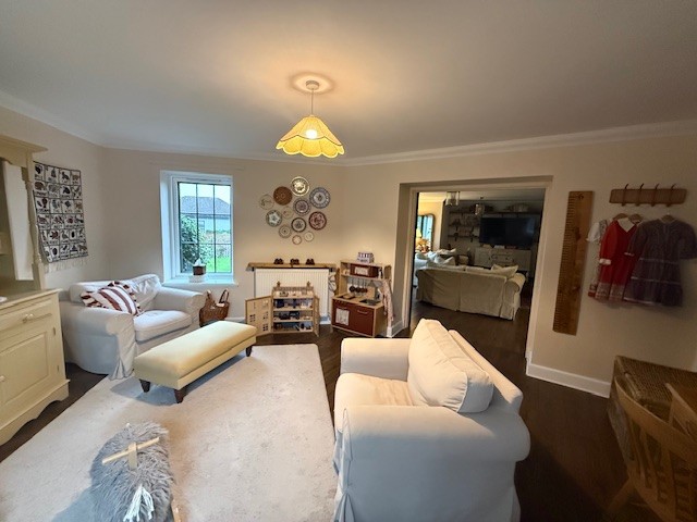This grand property boasts spacious accommodation throughout. The living room is bright and airy with french doors out to private garden. Other double doors lead to the large dining/play room. The kitchen is very large with appliances, separate utility room and small private drying area through the back door. Upstairs, there are four large bedrooms, one with en suite. Fitted wardrobes and ample storage can be found through the house. There is a garage attached to the property, as well as ample parking externally.